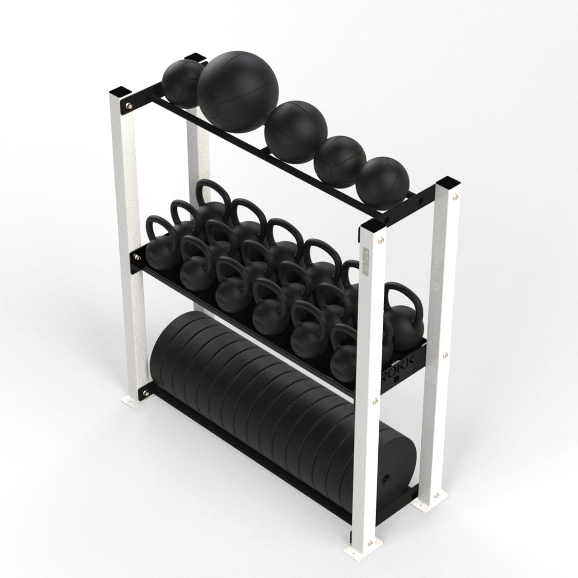 Masywna konstrukcja na bazie profili 80x80x2. Idealnie nadaje się do przechowywania obciążenia i akcesoriów treningowych.