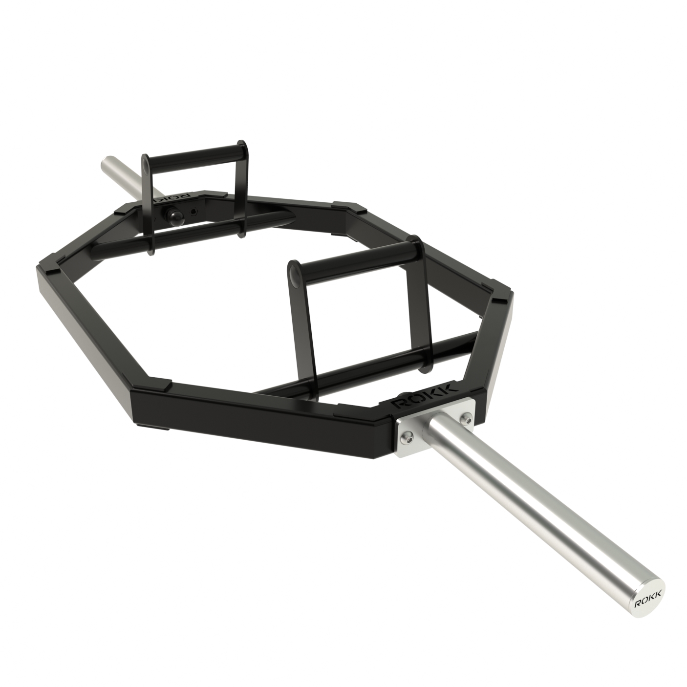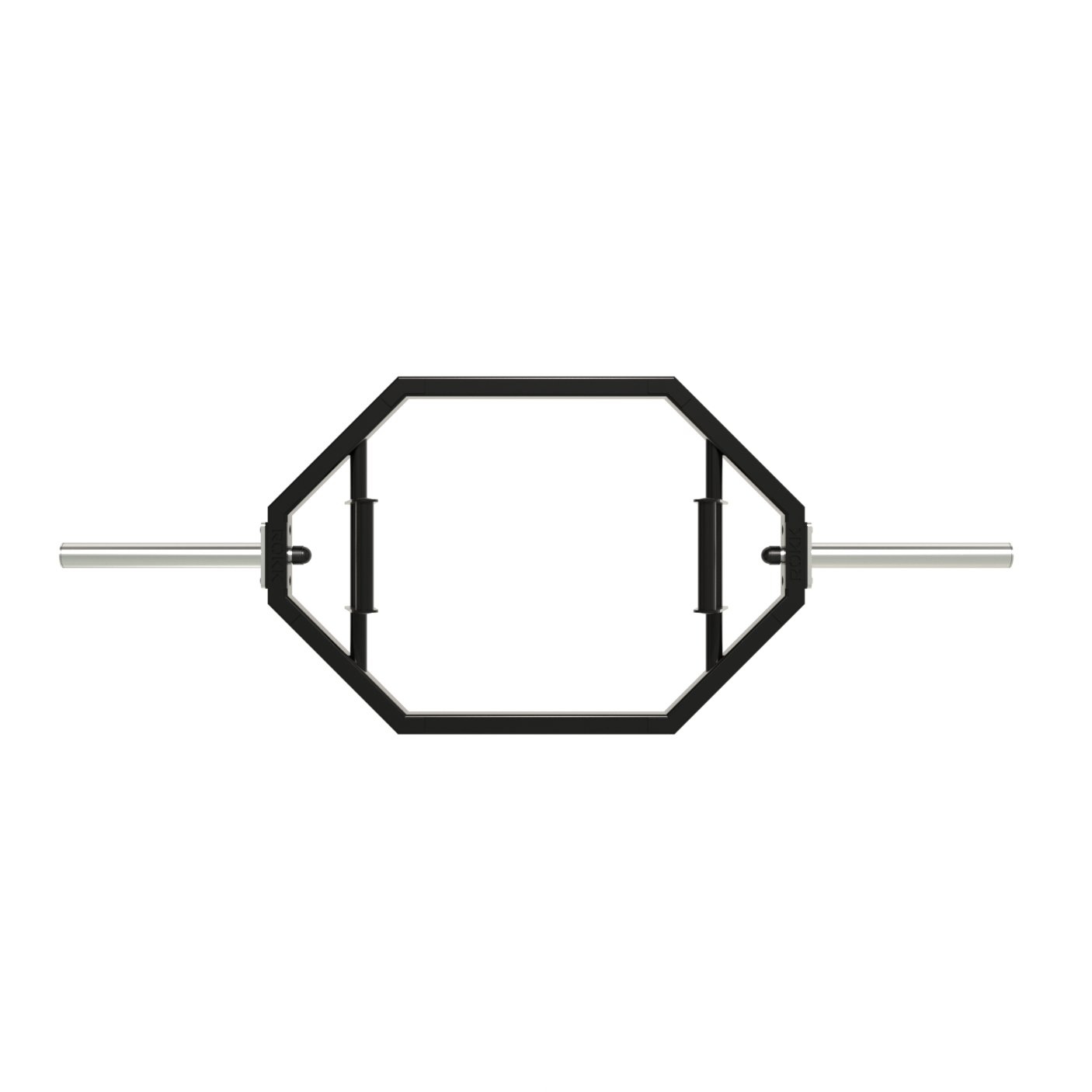 Sześciokątna konstrukcja oparta na wytrzymałych profilach 60x40 o ściance grubości 3 mm. Neutralne uchwyty sprawiają, że obciążenie wywiera mniejszy nacisk na odcinek lędźwiowy. Gryf heksagonalny dzięki osadzeniu obciążenia w środku osi względem ciała, świetnie nadaje się do wykonywania martwych ciągów.Praktyczne udogodnienia