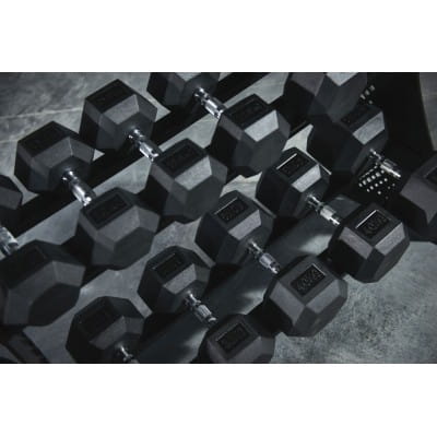 Hantla ogumowana HEX 60 kg renomowanej firmy Bauer Fitness. Sześciokątny kształt idealnie sprawdzi się w klubach fitness oraz w warunkach treningu domowego. Nietypowa forma hantli zapobiega toczeniu i zsuwaniu się.Radełkowany uchwyt zapewnia pewny chwyt i minimalizuje ryzyko wyślizgnięcia się hantli z rąk.