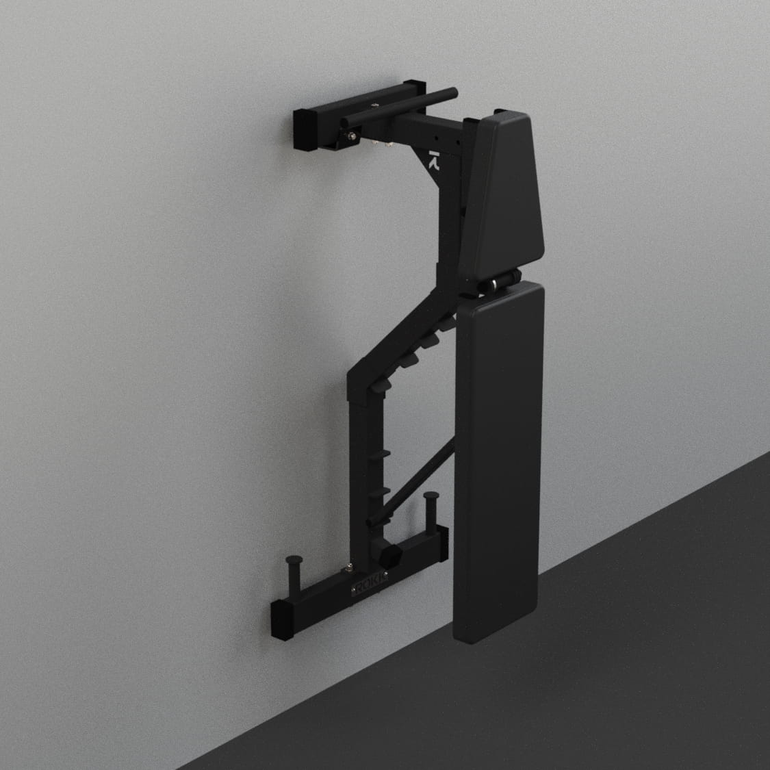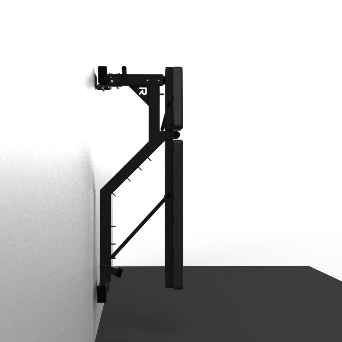 Trenujesz w warunkach domowych i zależy Ci na wolnej przestrzeni po skończonym treningu? Zaprojektowaliśmy wieszak, który pozwoli umieścić ławkę treningową w pozycji pionowej, a dodatkowe nakładki z tworzywa sztucznego zabezpieczą sprzęt przed otarciem.