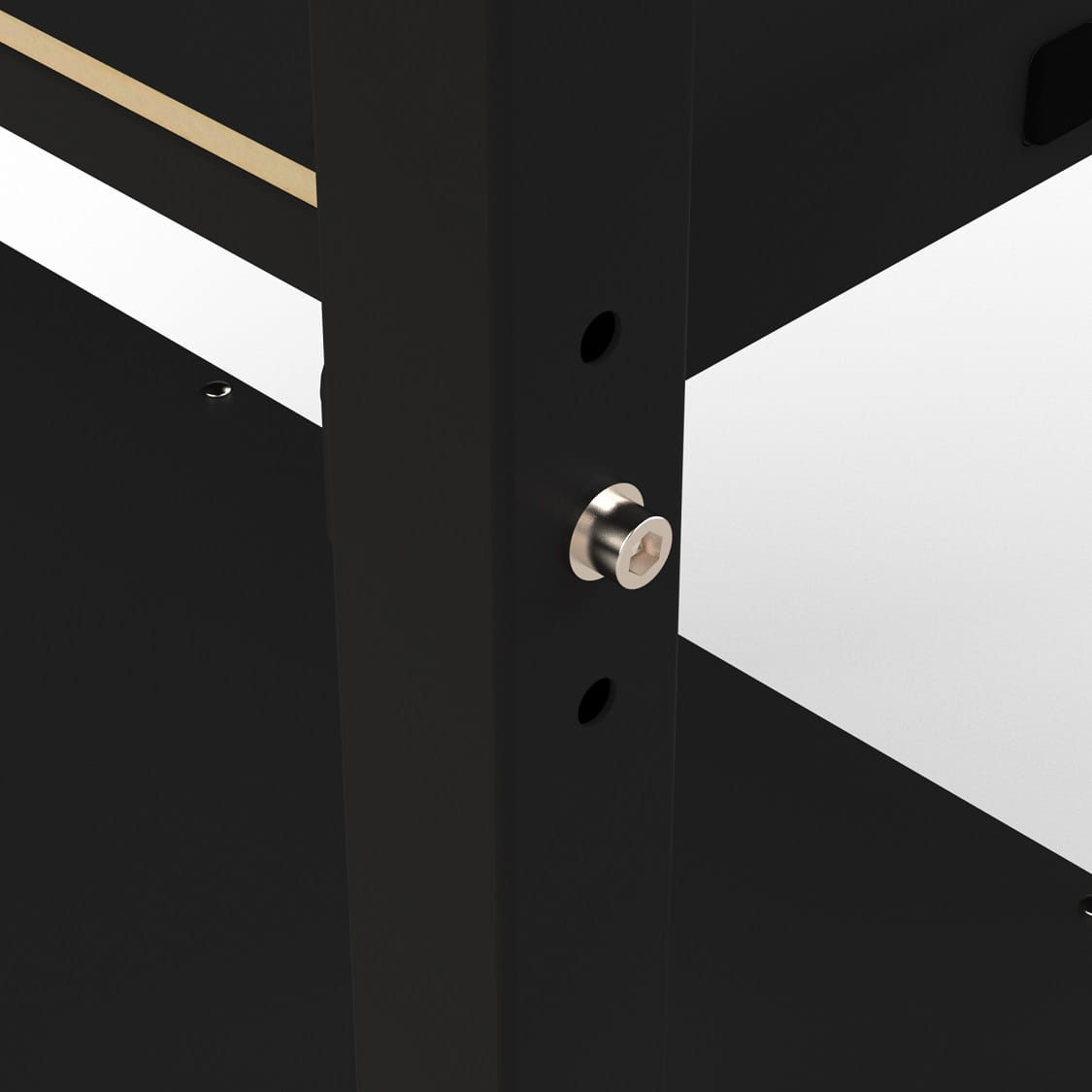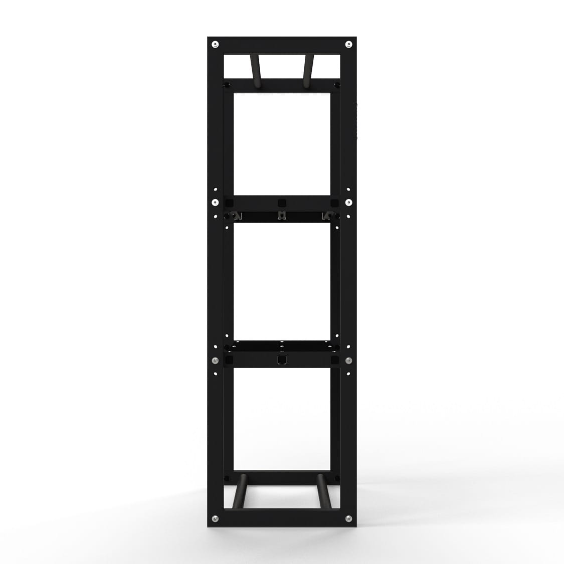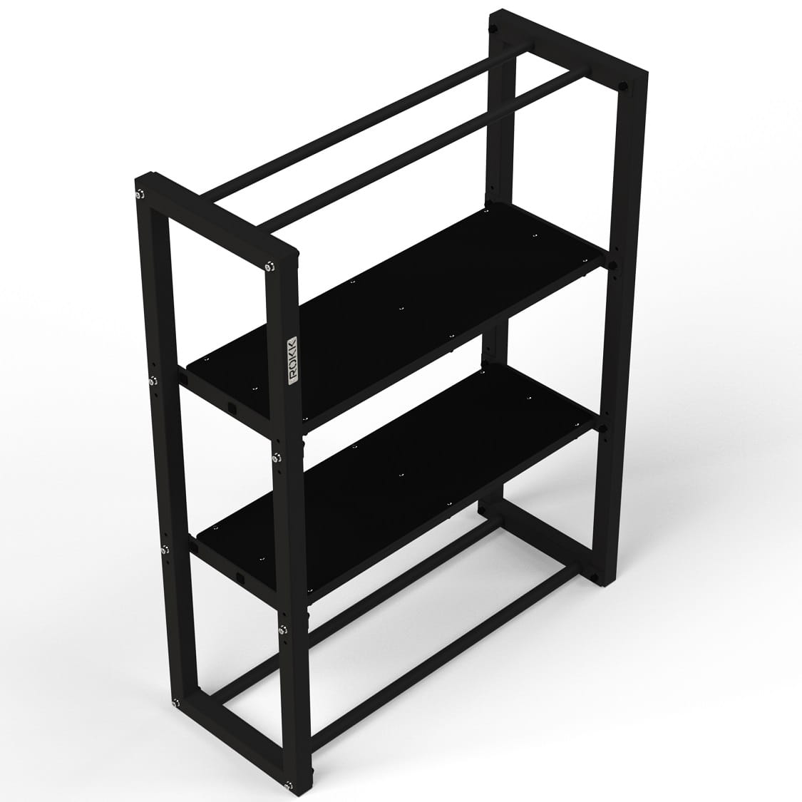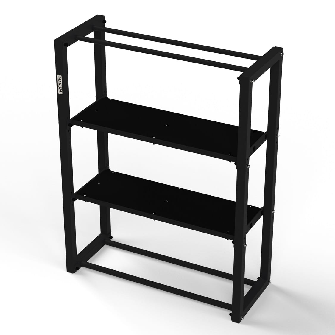 Konstrukcja na bazie profili 60x60 o ściance grubości 2mm. Idealnie nadaje się do przechowywania obciążenia i akcesoriów treningowych. Rama została pomalowana proszkowo, dzięki czemu jest odporna na korozję i uszkodzenia mechaniczne.Nośność każdej półki to 200kg. Bumpery umieszczone na najniższym poziomie opierają się na podłożu i nie wlicza się ich w łączny udźwig regału.