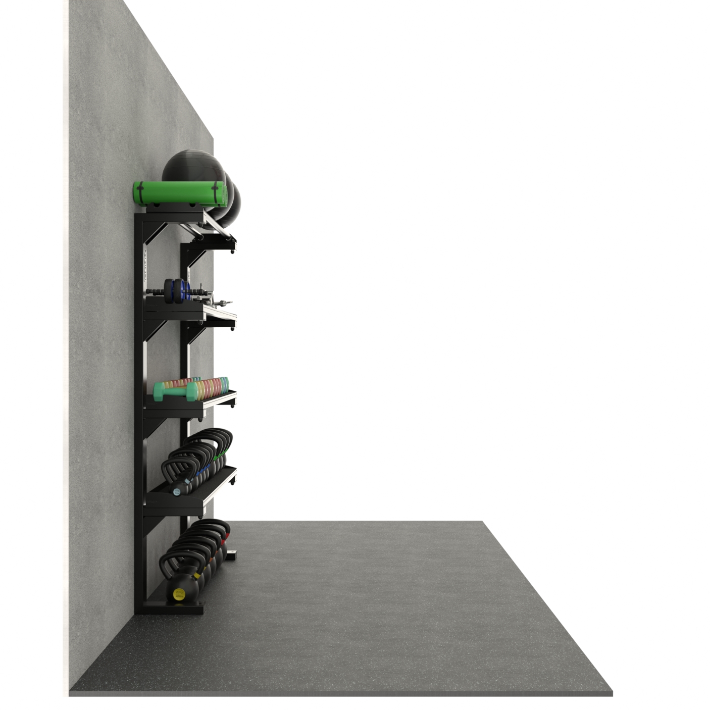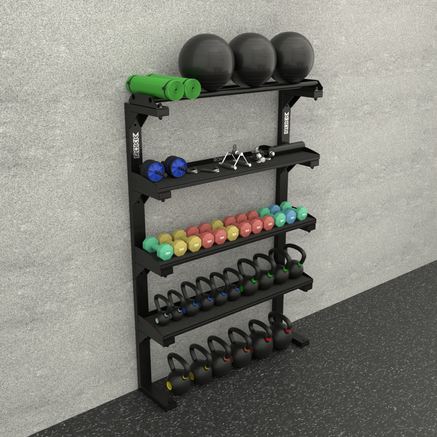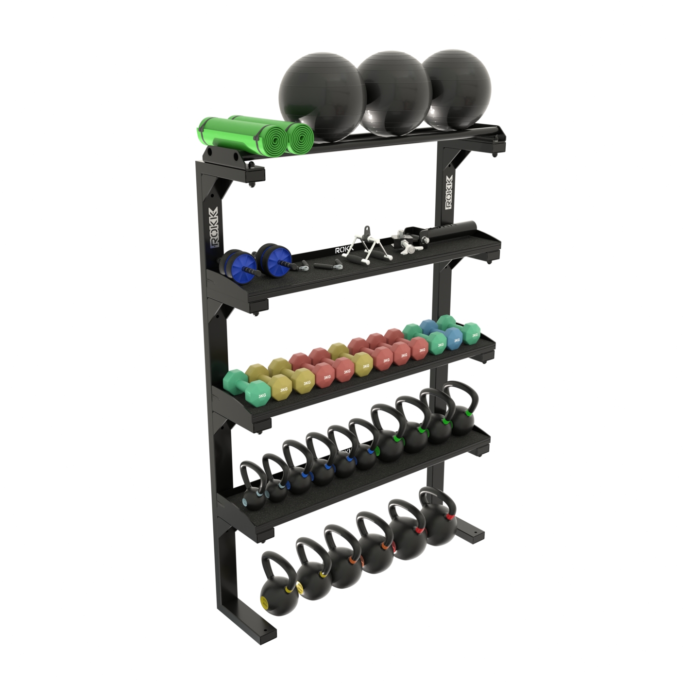 Nie każda przestrzeń treningowa pozwala na rozbudowane systemy przechowywania. Dlatego regał przyścienny ROKK został zaprojektowany z myślą o miejscach, gdzie liczy się każdy centymetr, w studiach treningowych, mniejszych siłowniach i strefach funkcjonalnych. To rozwiązanie, które łączy dużą pojemność z niewielkimi gabarytami, pozwalając uporządkować sprzęt bez zajmowania cennej przestrzeni użytkowej.Konstrukcja regału