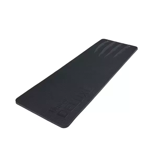 Maksymalny rozmiar, jakość wykonania i oryginalne tłoczenia to atuty maty deluxe, po którą sięgają najbardziej wymagający użytkownicy. Mata deluxe ze względu na swój rozmiar i wyjątkową grubość doskonale nadaje się do ćwiczeń akrobatycznych, rozciągających i treningu Pilates, w trakcie którego musisz mieć zapewnioną ochronę od twardego podłoża oraz wygodę. Liczne ćwiczenia polegające na rolowaniu kręgosłupa w Pilatesie wymagają odpowiedniej amortyzacji chroniącej przed powstawaniem siniaków i drobnych urazów mechanicznych, którą gwarantuje mata deluxe. Takiej ochrony i komfortu w trakcie treningu Pilates nie zapewniają cienkie maty. 180- centymetrowa długość maty to gwarancja komfortowego wykonywania pozycji leżących, bez niewygodnie wystających poza matę stóp.